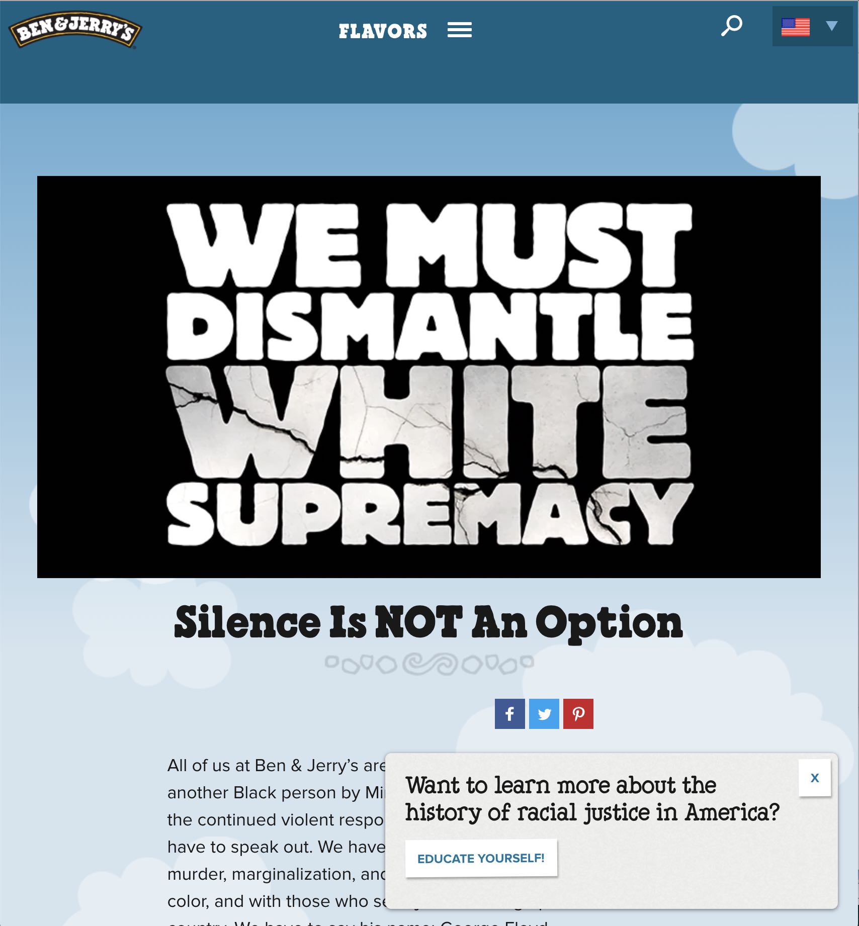 Ben and Jerry’s doesn’t shy away from dealing with racial inequality. They have been doing it before it was even a trend; embracing inclusion in its brand values even though it very little to nothing to do with the product itself. Their advocacy work is about pushing society to be more inclusive of BIPOC folks, and they have done excellent work for this underrepresented group, however, they may have more opportunity to ensure that their overall practices are inclusive of their entire customer mix.